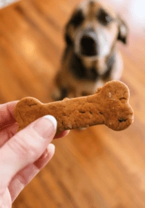 Place all of these contents into a blender or food processor – blend until smooth and grainy.Place in a silicon baking sheet / moldFreezeWhen frozen, remove from mold and put in freezer bag.Will actually keep in the freezer up to six months.(Please note, it MUST be Brewer’s Yeast in this recipe, if you use regular yeast it could end up hurting your dog)Pumpkin Biscuits2 cups of flower1 egg1/3 cup of peanut butter1/2 cup of Pumpkin (try to make Organic)Roll out to 1/2″ thickCut out biscuitsBake 40 minutes at 350 degrees